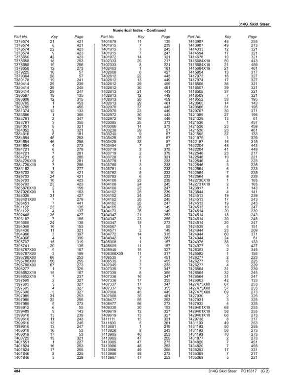 - John Deere 314G Skid Steers (SN 1T0314G_ J366358) Parts Catalog – 488 Pages
