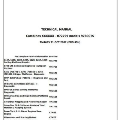 John Deere 9780 CTS Combines Diagnostic and Repair Manual