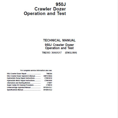 John Deere 950J Crawler Dozer Technical Manual (TM2363 and TM2364)
