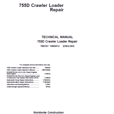 John Deere 755D Crawler Loader Technical Manual (TM2366 and TM2367)