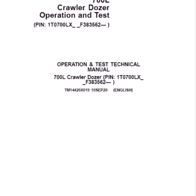 John Deere 700L Crawler Dozer Repair Technical Manual (S.N after F383562 – )