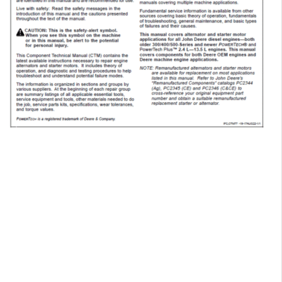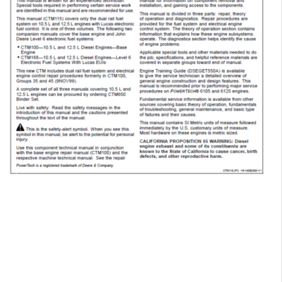 John Deere PowerTech 10.5L, 12.5L Diesel Engines Lucas Electronic Fuel Systems Repair Manual