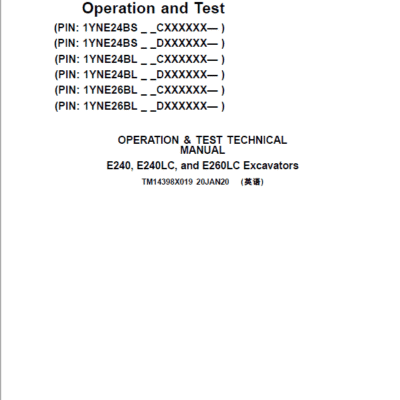 John Deere E240, E240LC, E260LC Excavator Repair Manual