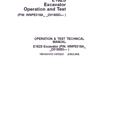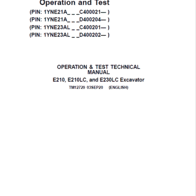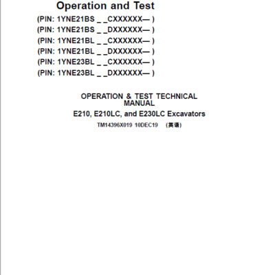 John Deere E210, E210LC, E230LC Excavator Repair Manual