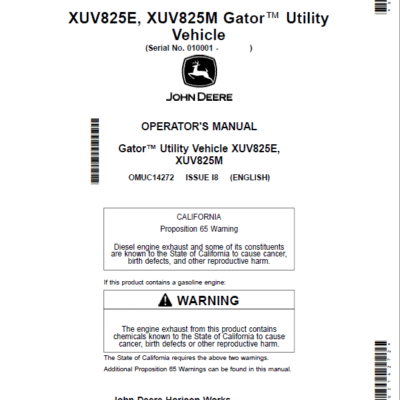 John Deere XUV825E, XUV825M, XUV825M S4 Gator Utility Vehicles Repair Manual