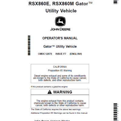 John Deere XUV855D S4 Gator Utility Vehicle Service Repair Manual