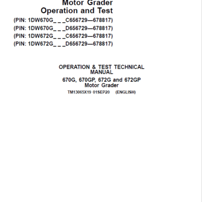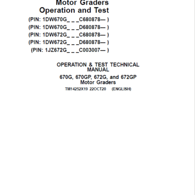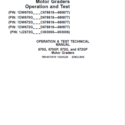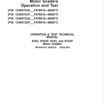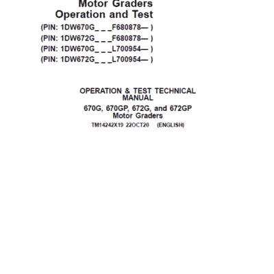 John Deere 670G, 670GP, 672G, 672GP Grader Repair Service Manual