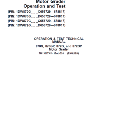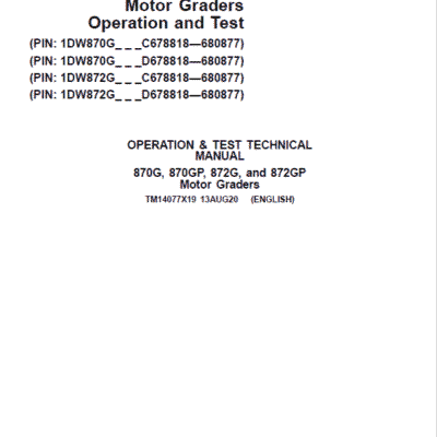 John Deere 870G, 870GP, 872G, 872GP Grader Manual