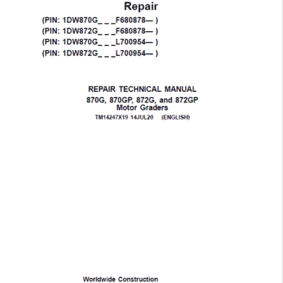 John Deere 870G, 870GP, 872G, 872GP Grader Repair Services Manual