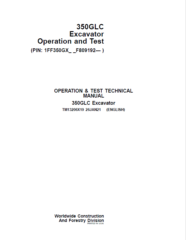 John Deere 350GLC Operation Test Manual – TM13206X19