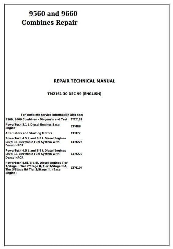 TM2161 – John Deere 9560 and 9660 Combines (SN. 705201-) Service Repair Technical Manual