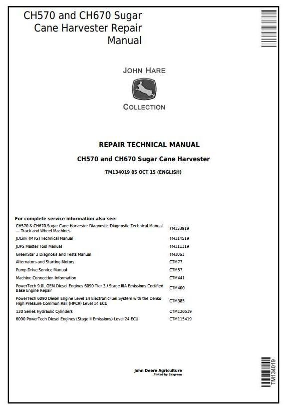 John Deere CH570 CH670 1T8 Sugar Cane Harvester Repair Manual