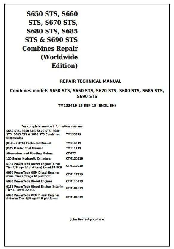 TM133419 – John Deere S650STS, S660STS, S670STS, S680STS, S685STS, S690STS Combines Repair Manual
