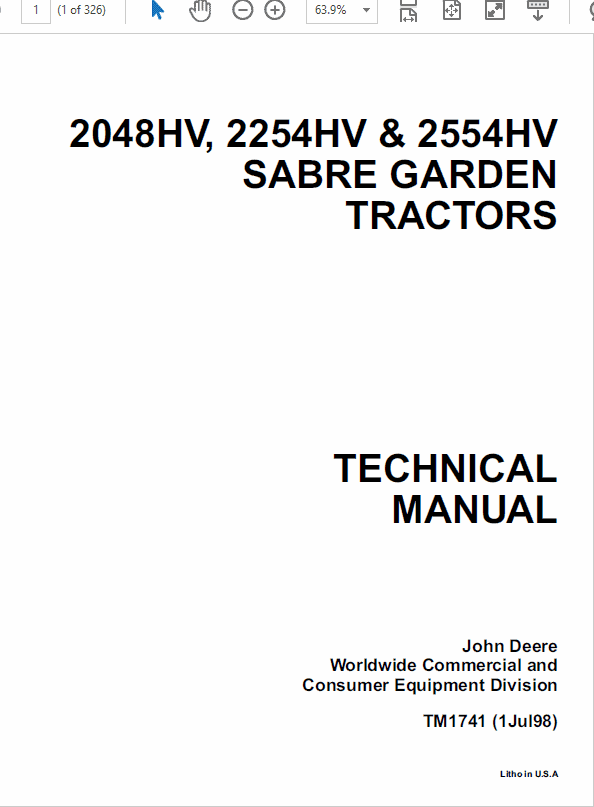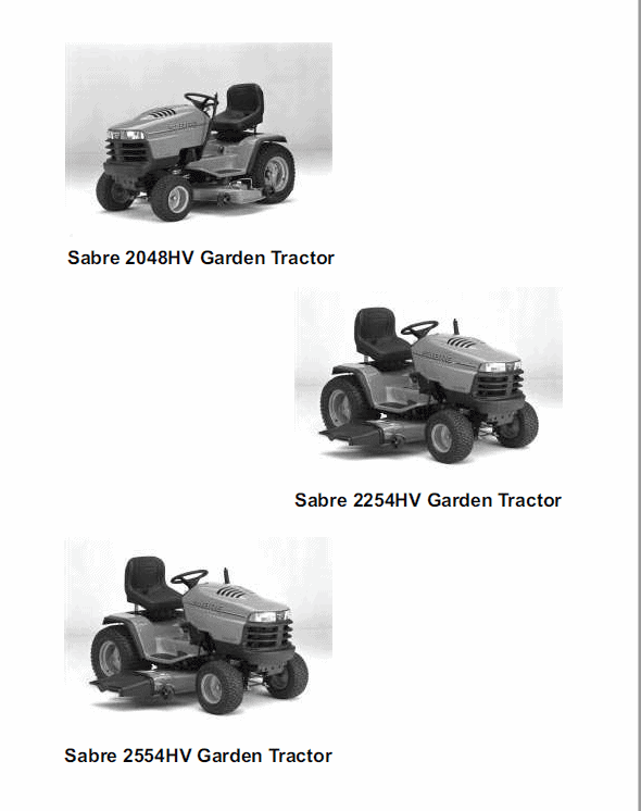 John Deere Sabre Garden Tractors 2048HV, 2254HV & 2554HV Service Manual