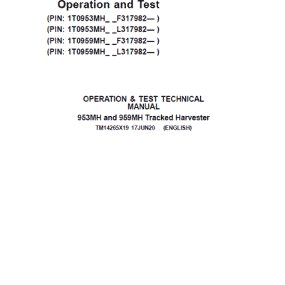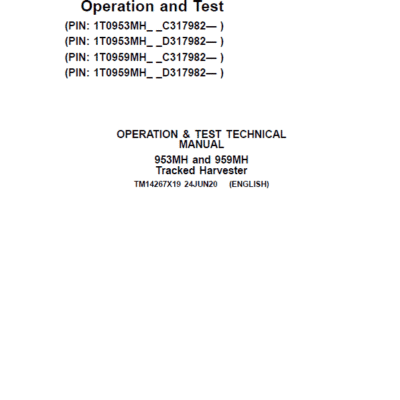 John Deere 953MH, 959MH Tracked Harvester Repair Manual SN