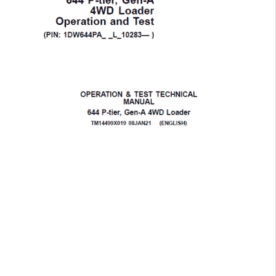 John Deere 644 P-Tier, Gen-A 4WD Loader Repair Technical Manual