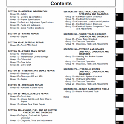 John Deere 316, 318, 420 Lawn Garden Tractors Technical Manual
