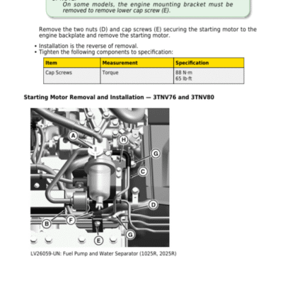 John Deere 3025E, 3032E, 3036E, 3038E Tractors Technical Manual