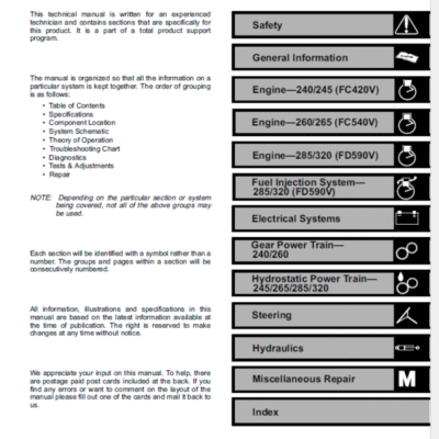 John Deere 240, 245, 260, 265, 285, 320 Lawn Garden Tractors Technical Guide