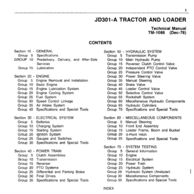 John Deere 301A Tractor and Loader Technical Manual (TM1088)