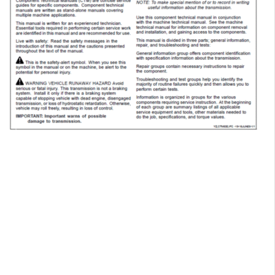 John Deere DF Series 150, 250 Transmissions (Analog) Repair Manual