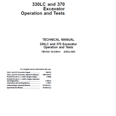 John Deere 330LC, 370 Excavator Repair Service Manual