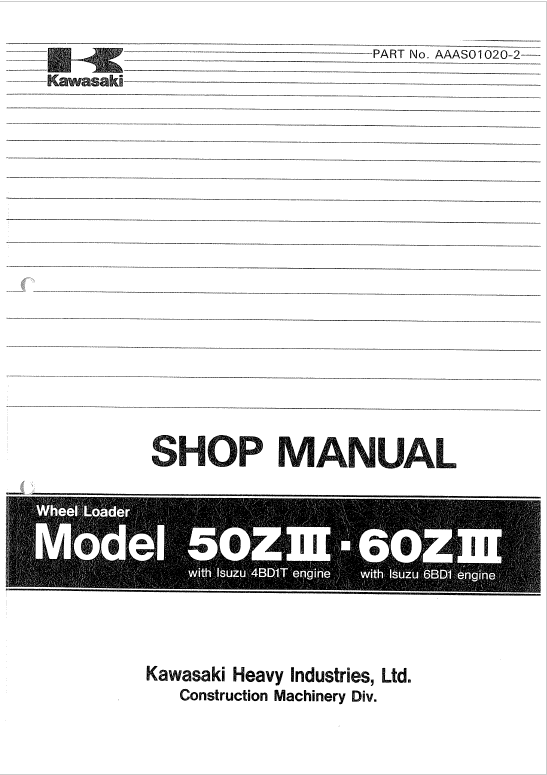 Kawasaki 50ZIII Wheel Loader Service Manual