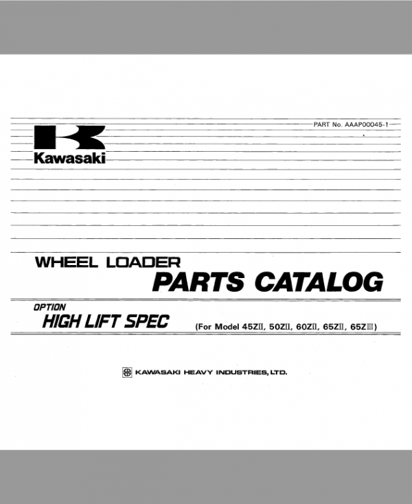 Kawasaki 65ZIII Wheel Loader Parts Catalog Manual – 50 Pages