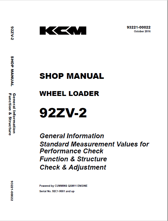 Kawasaki 92ZV-2 Wheel Loader Service Manual