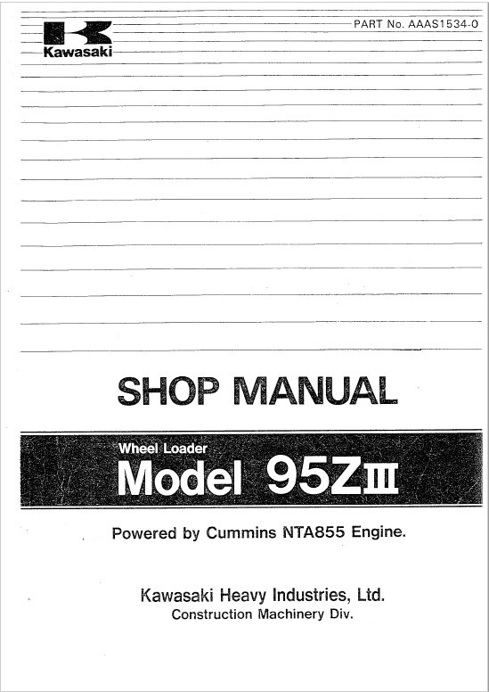 Kawasaki 95ZIV Wheel Loader Service Manual