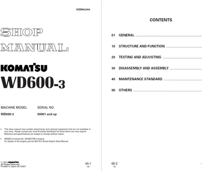 Komatsu WD600-3 Wheel Dozer Manual