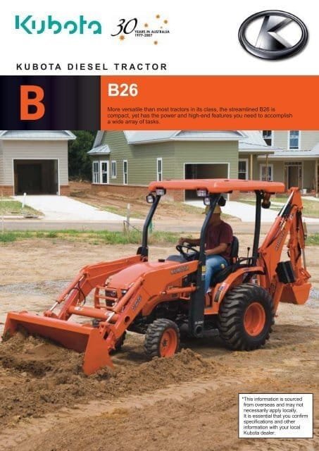 Your Kubota B26 Backhoe operators correspond with the number of pages printed on it in this manual, very easy to use.