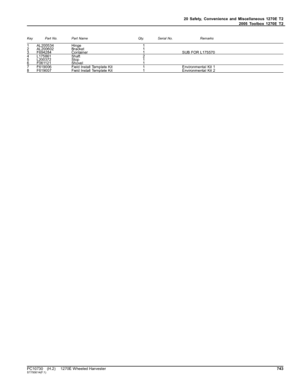 - John Deere 1270E T2 Wheeled Harvesters (SN 001802-) Parts Catalog – 1016 Pages