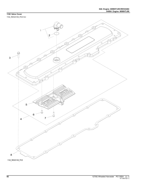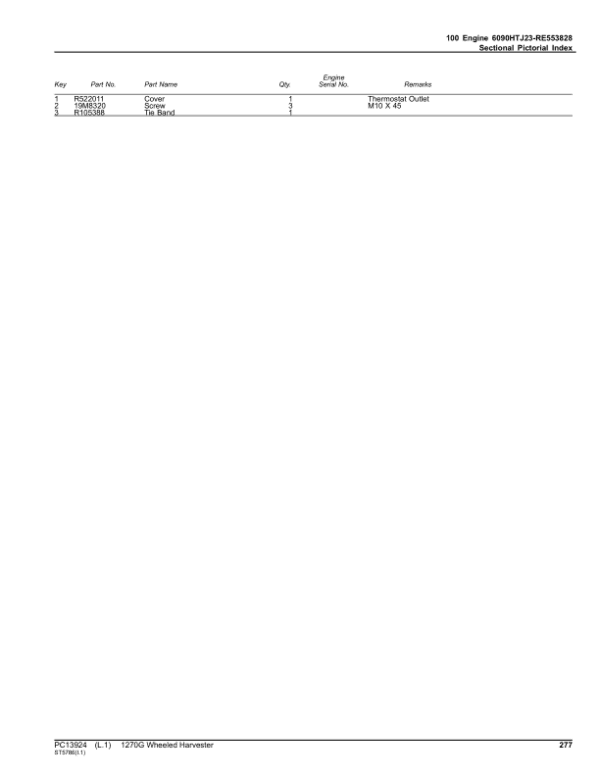 John Deere 1270G FT4 T3 8W Wheeled Harvesters (SN 1WJ1270G__D004999-) Parts Catalog Manual
