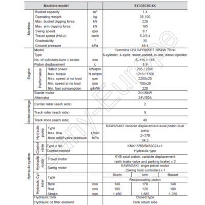 Sany SY335C Hydraulic Excavator Repair Service Manual