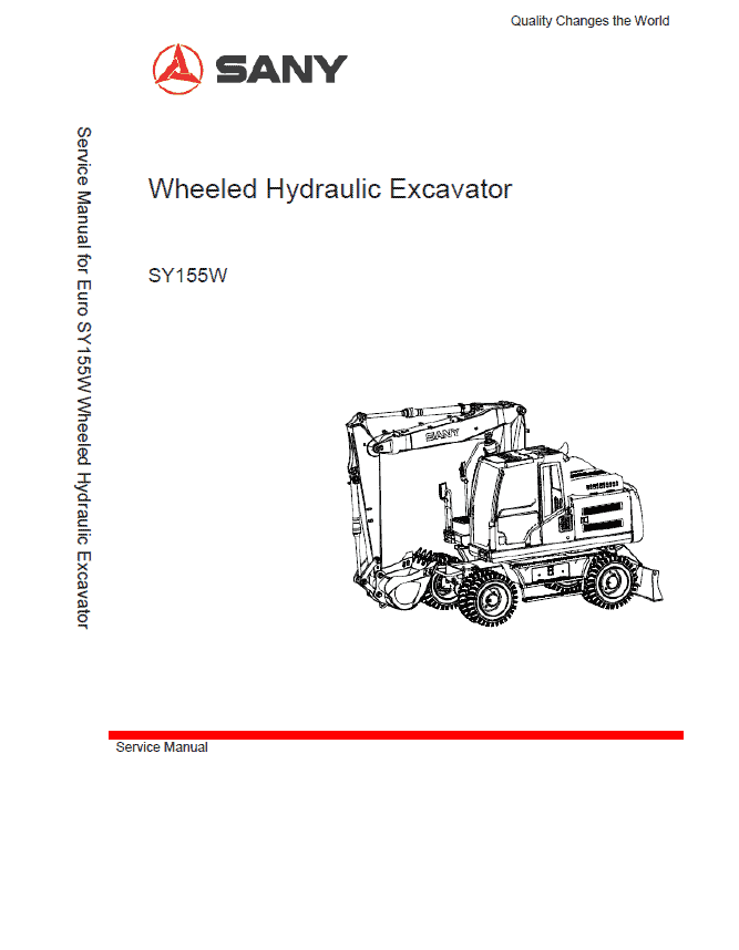- Sany SY155W Hydraulic Excavator Repair Service Manual – 718 Pages