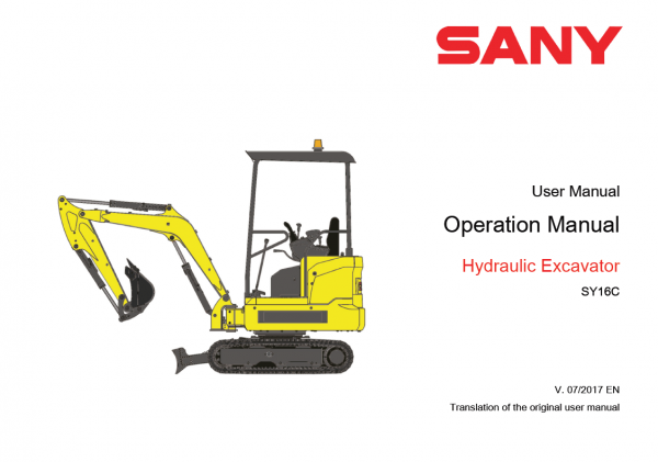 - Sany SY16C Hydraulic Excavator Operation Manual – 149 Pages