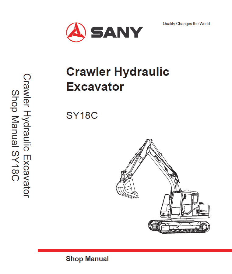 - Sany SY18C Hydraulic Excavator Repair Service Manual – 454 Pages
