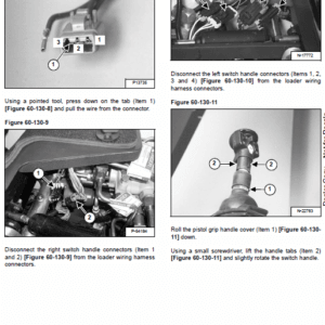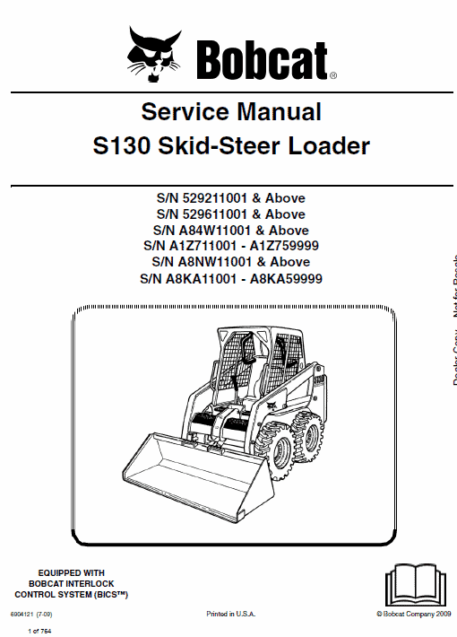 These manual is for the Bobcat S130 Skid-Steer Loader . It provides necessary servicing and adjustment procedures for the Bobcat S130 Skid-Steer Loader and its component parts and systems. Refer to the Operation & Maintenance Manual and service manual for operating instructions, repair, starting procedure, daily checks, etc.