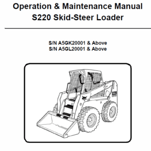 These manual is for the Bobcat S220 Skid-Steer Loader . It provides necessary servicing and adjustment procedures for the Bobcat S220 Skid-Steer Loader and its component parts and systems. Refer to the Operation & Maintenance Manual and service manual for operating instructions, repair, starting procedure, daily checks, etc.