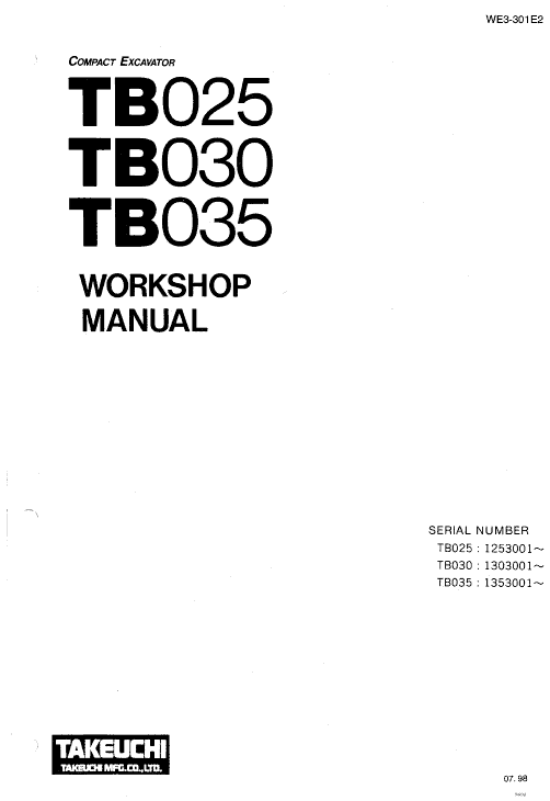 Takeuchi TB025, TB030 and TB035 Excavator Service Manual