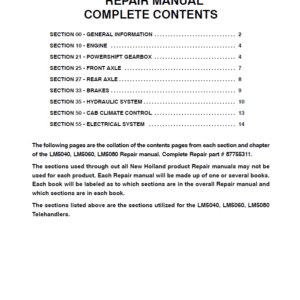 The New Holland manual is applicable for the model namely : LM5040, LM5060, LM5080