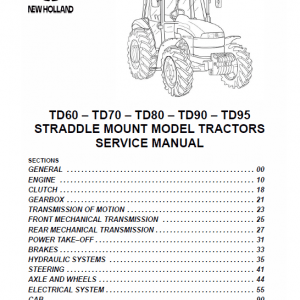 This service manual provides the technical information needed to properly service the New Holland Straddle TD60, Straddle TD70, Straddle TD80, Straddle TD90 and Straddle TD95 transmission, Axle and other parts of the Tractor. Use this manual in conjunction with the operators manual for complete operation, adjustment, and maintenance information. Read this manual carefully before starting, using, carrying out refueling or performing any other type of operation on the tractor.