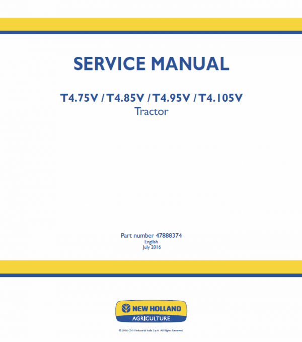 New Holland T4.75V, T4.85V, T4.95V, T4.105V Tractor Service Manual