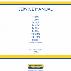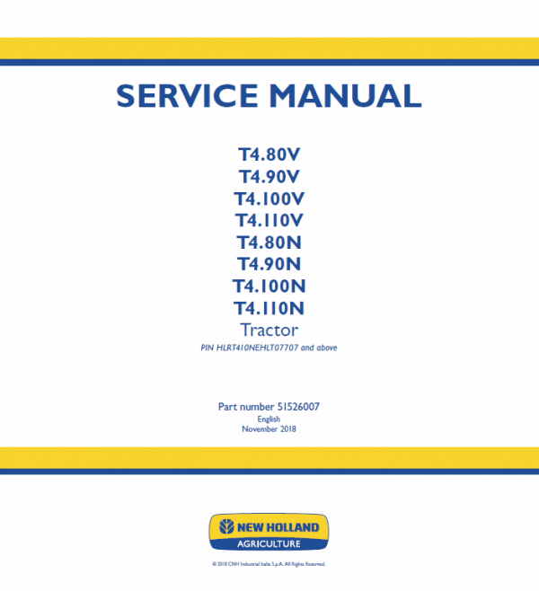 This service manual provides the technical information needed to properly service the T4.80V, T4.90V, T4.100V, T4.110V transmission, Axle and other parts of the Tractor. Use this manual in conjunction with the operators manual for complete operation, adjustment, and maintenance information. Read this manual carefully before starting, using, carrying out refueling or performing any other type of operation on the tractor.