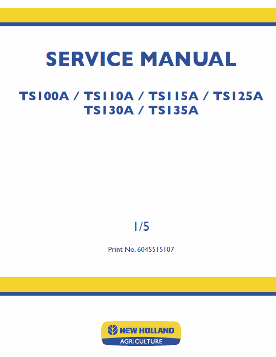 This service manual provides the technical information needed to properly service the TS125A, TS130A, TS135A transmission, Axle and other parts of the Tractor. Use this manual in conjunction with the operators manual for complete operation, adjustment, and maintenance information. Read this manual carefully before starting, using, carrying out refueling or performing any other type of operation on the tractor.