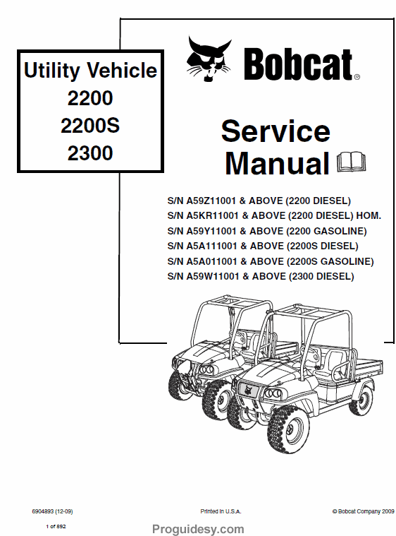Bobcat 2200 2300 Utility Vehicle Service Manual