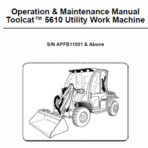 These manual is for the Bobcat 5610 Tool cat Utility Vehicle. It provides necessary servicing and adjustment procedures for the Bobcat 5610 Toolcat Utility Vehicle and its component parts and systems. Refer to the Operation & Maintenance Manual and service manual for operating instructions, repair, starting procedure, daily checks, etc.