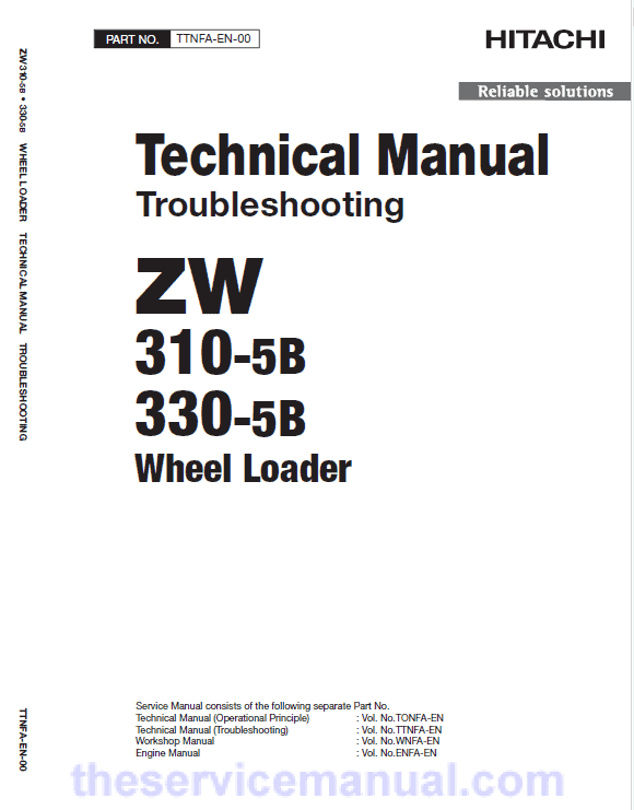 The manual is applicable for the Hitachi ZW310-5A, ZW310-5B Wheel Loader Model