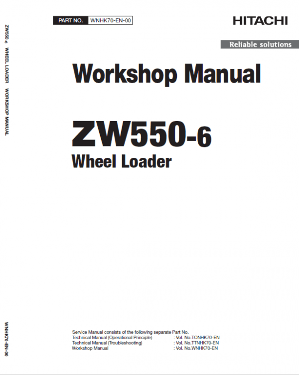 The manual is applicable for the Hitachi ZW550-6 Wheel Loader Model